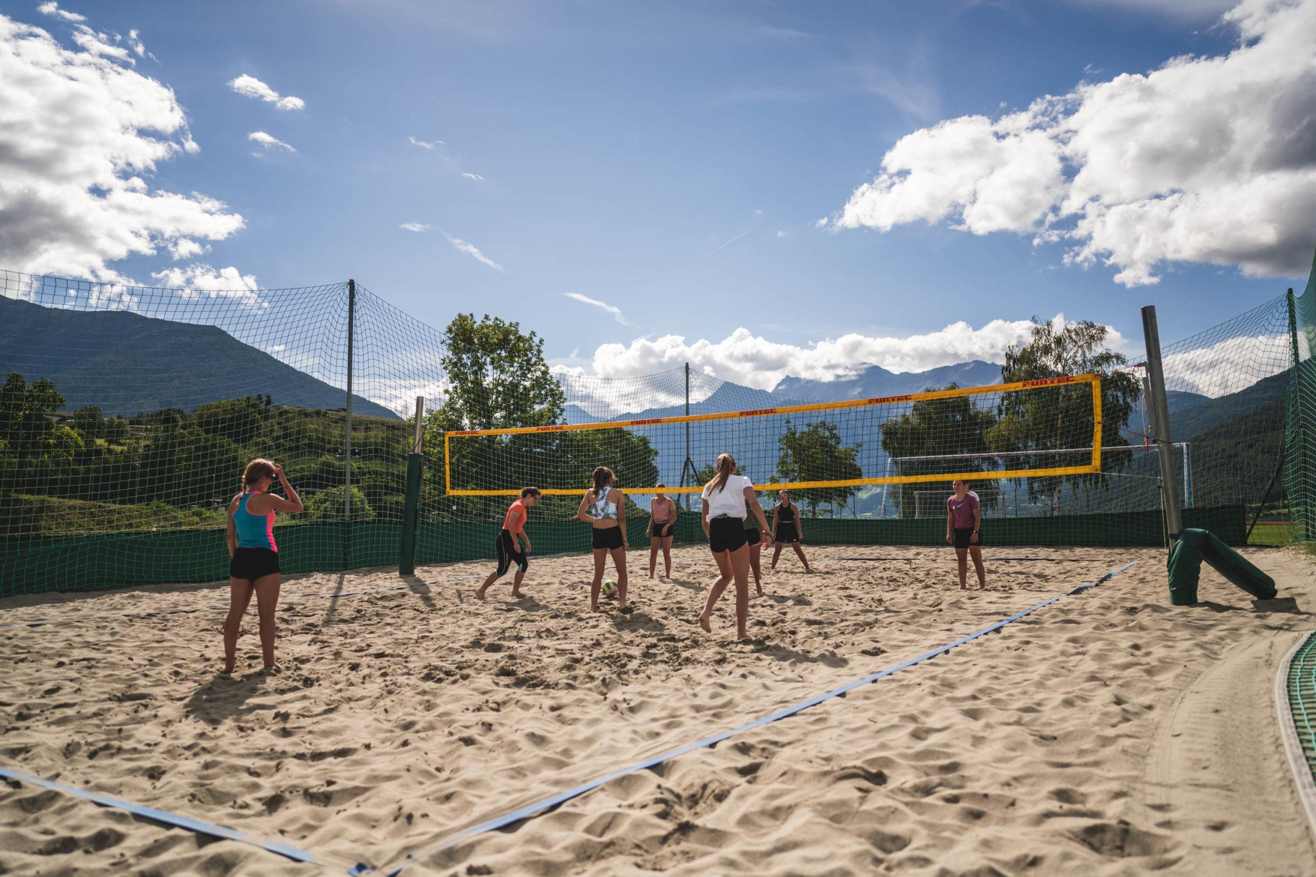 Wer Strandfeeling in den Bergen sucht, findet es auf dem 8 x 16 m großen Beachvolleyballfeld im Sport- und Freizeitzentrum in Mals. Dort wird im Sommer unter der Sonne gebaggert und fleißig gepritscht. Das rasante Strandspiel eignet sich für die ganze Familie. Dabei sorgt Beachvolleyball nicht nur für gute Laune, sondern stärkt auch Ausdauer, Kraft, Konzentrations- und Koordinationsfähigkeit.