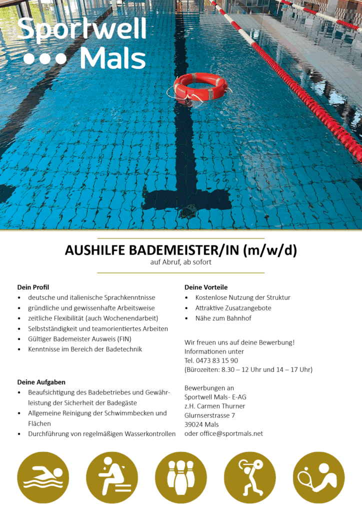 Indoor pool: 2:00 p.m. – 9:30 p.m. + Wednesday early morning swimming 8:00 a.m. – 10:00 a.m.