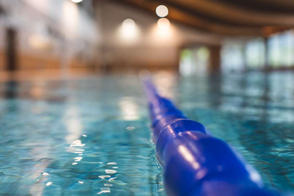 Ein Schwimmbadlift für Menschen mit Behinderung kann auf Anfrage zur Verfügung gestellt werden.
